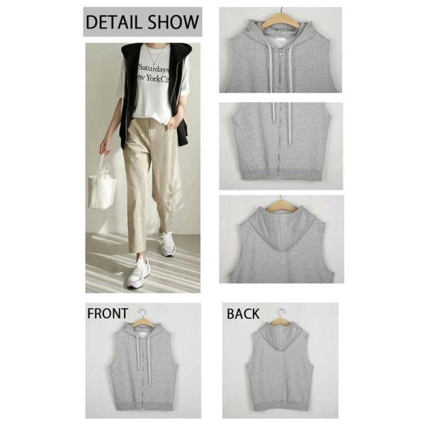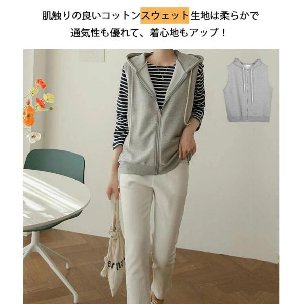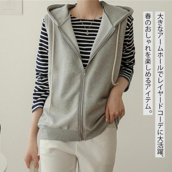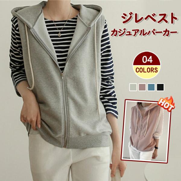 ベスト パーカー レディース 春 秋 前開き トップス フード付き ジップアップ パーカーベスト ノースリーブ ゆったり カットソーベスト レイヤード スウェット