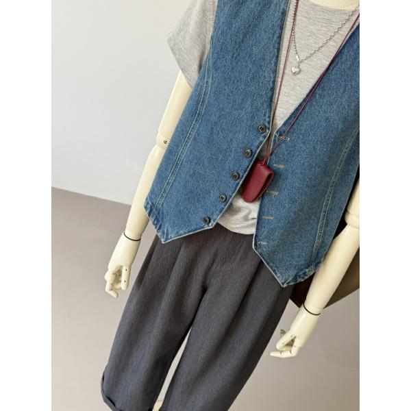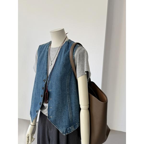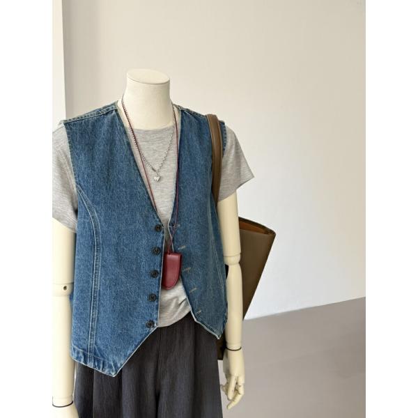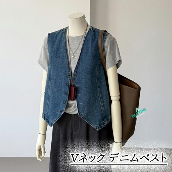 Vネック デニムベスト 重ね着 ジーンズベスト トップス 春夏 レディース 韓国ファッション 無地 婦人服 ナチュラル ゆったり ノースリーブ カジュアル アウター