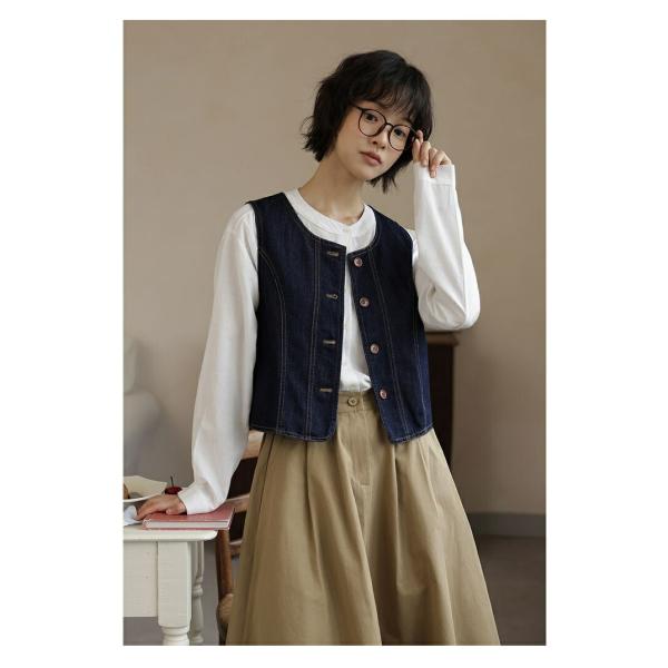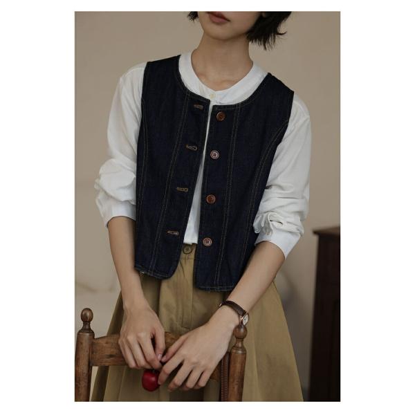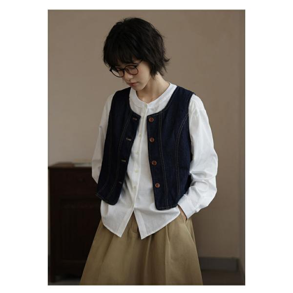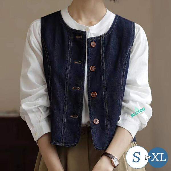 デニム ベスト ジレ レディース ノーカラー 体型カバー ゆったり トップス 無地 前開き ノースリーブ デニムジャケット トップス カジュアル30代 40代 50代 60代