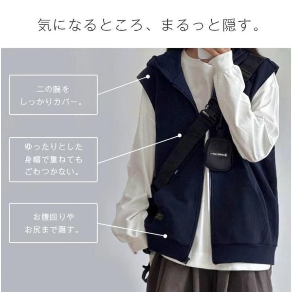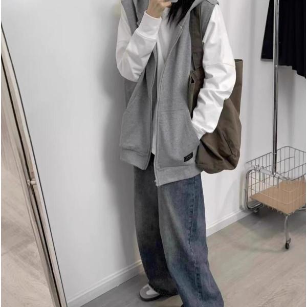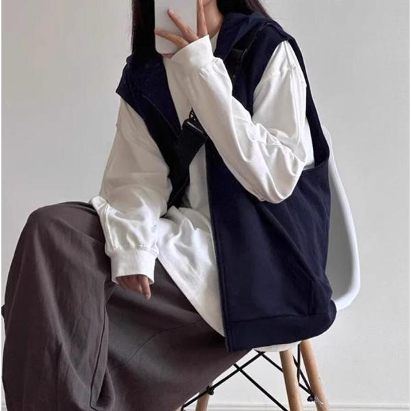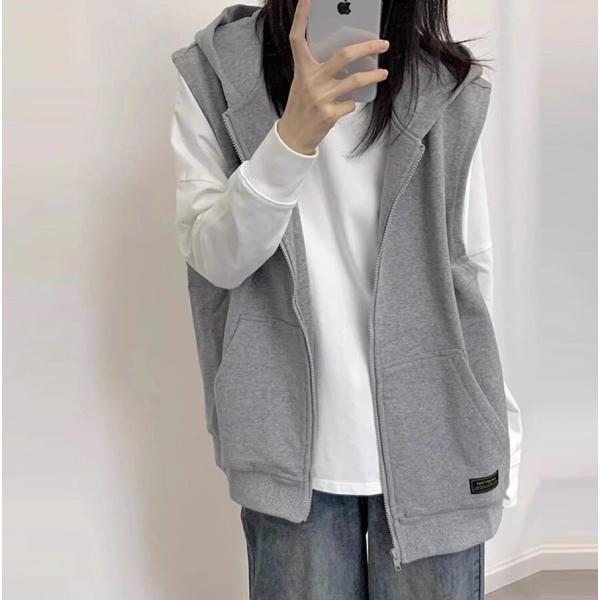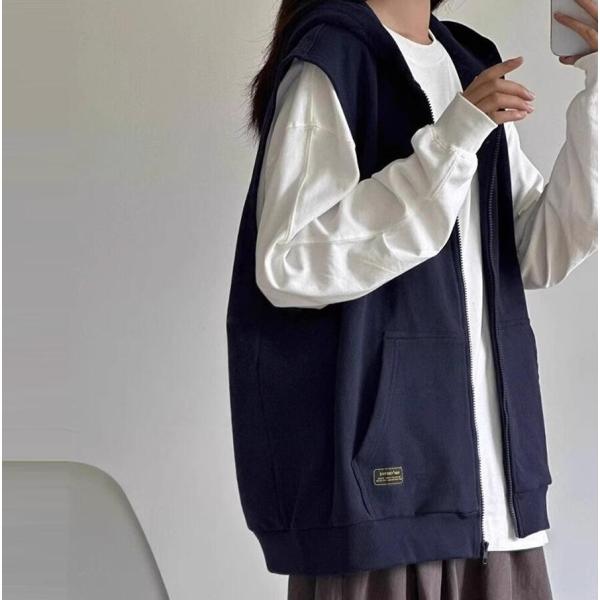 ベスト レディース 春秋 パーカーベスト スウェットベスト ジップアップ 前開き トップス カーディガン ポケット付き アウター ノースリーブ 羽織り 無地 着痩せ