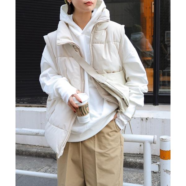 ダウンベスト ベスト スタンドカラーフェイクダウン中綿ベスト レディース