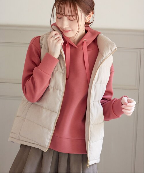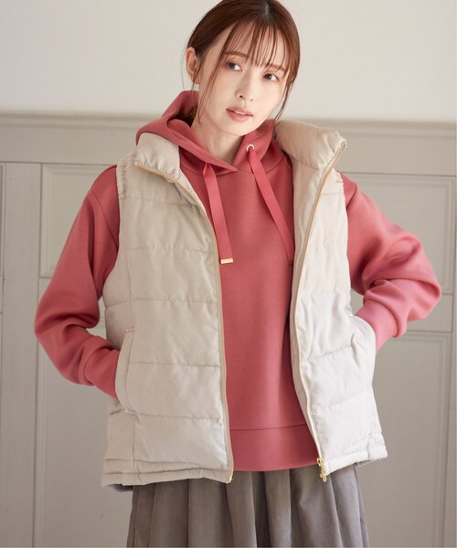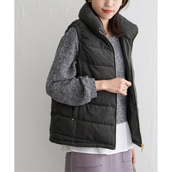 ダウンベスト ベスト 細コールボリューム襟ベスト レディース