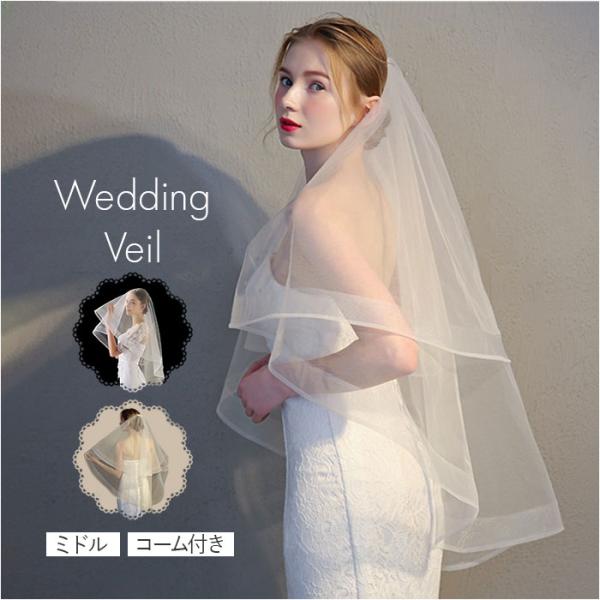 ウェディング ベール ミドル 通販 ウエディングベール ウェディングベール ミドルベール ウエディング ヴェール 結婚式 花嫁 veil 2層 ウェディング
