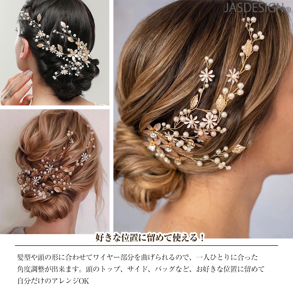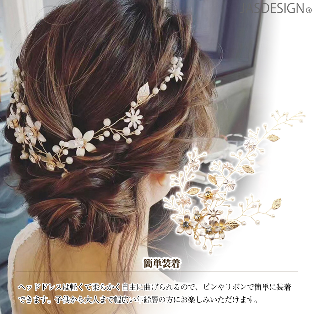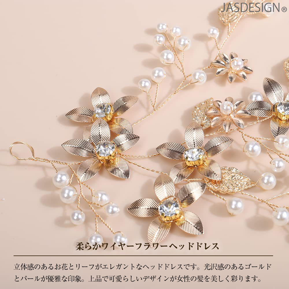 ヘアアクセサリー 結婚式 髪飾り ヘッドドレス パール 花 ヘアアクセ バックカチューシャ ウェディング ゴールド ブライダル お呼ばれ 披露宴 ショート JM-284