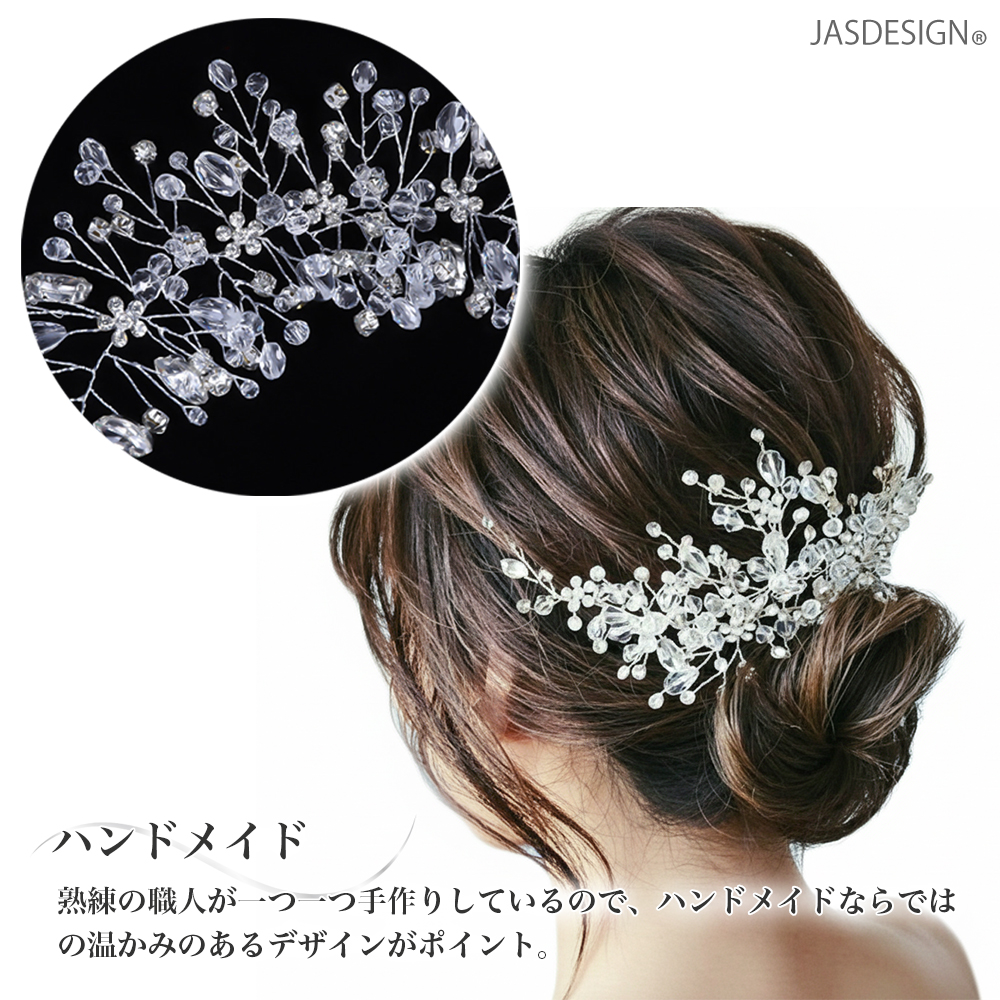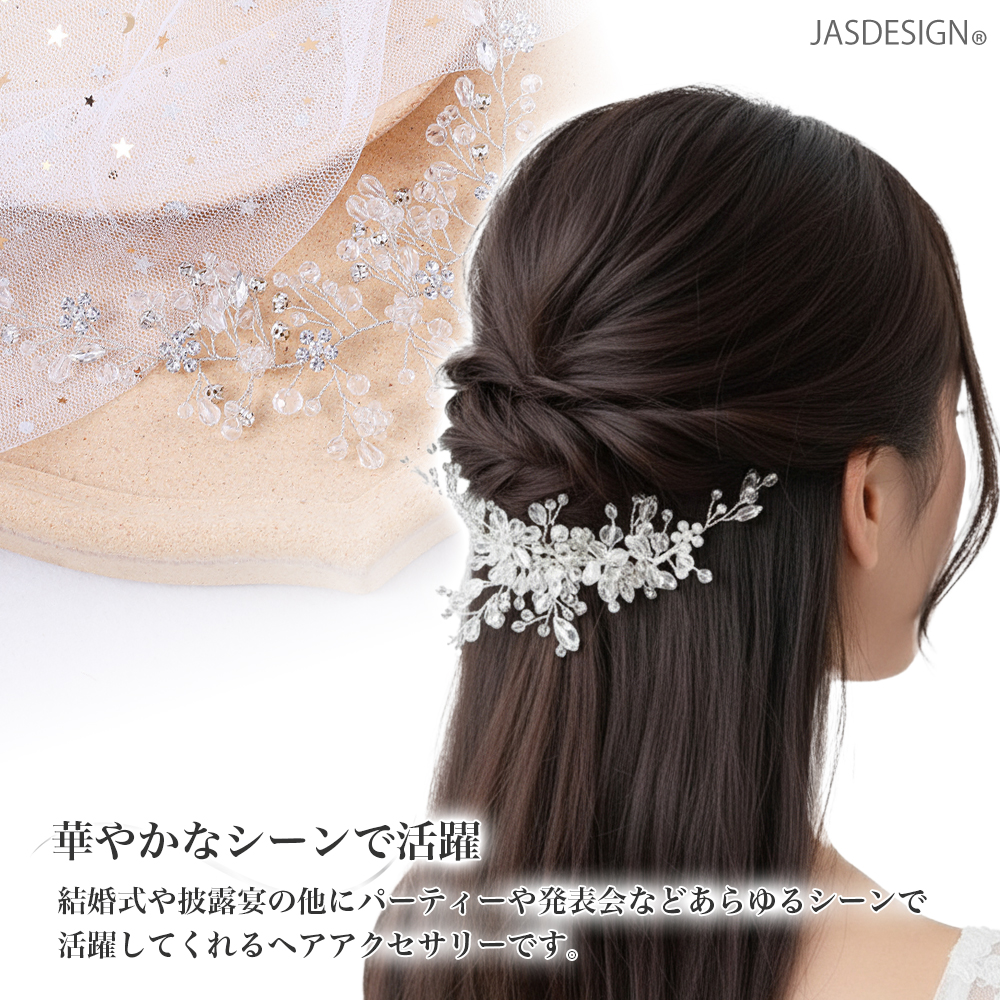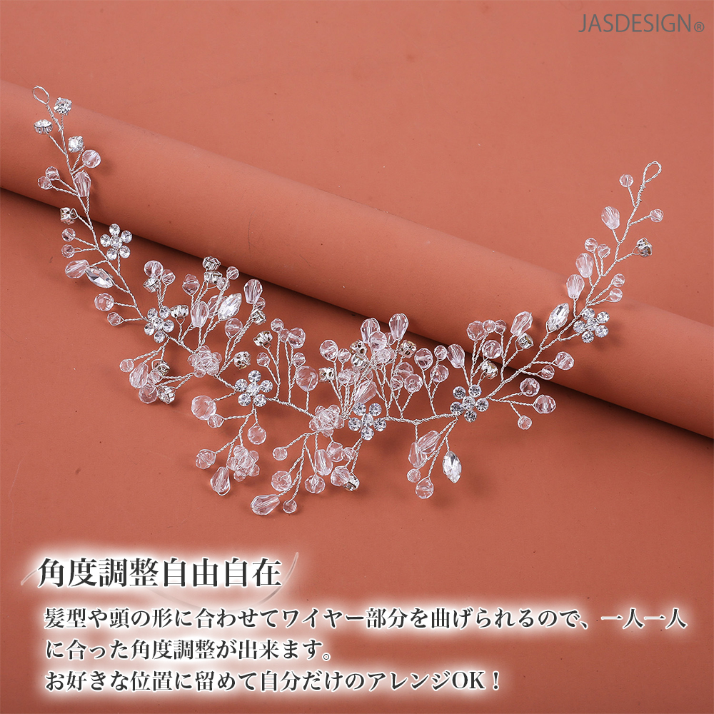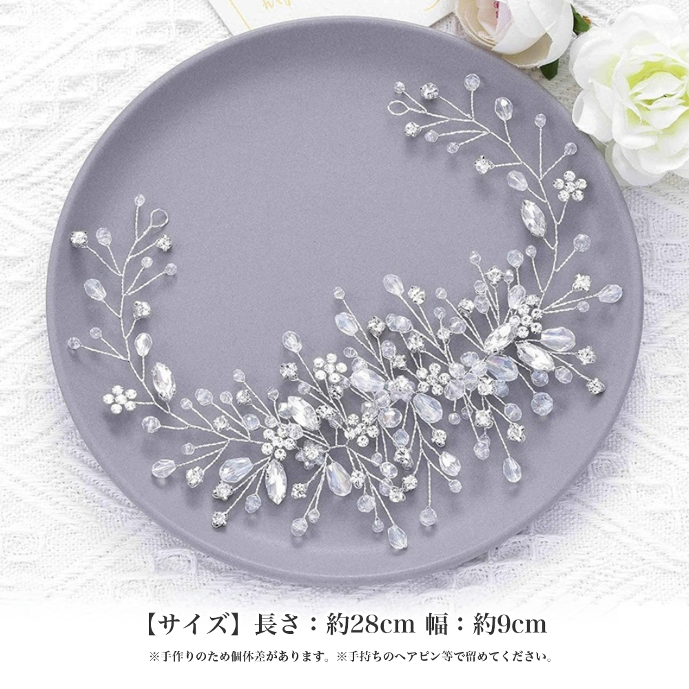 ヘアアクセサリー 結婚式 髪飾り ヘッドドレス シルバー ビーズ 花 リーフ ウエディング お呼ばれ パーティー カチューシャ ブライダル 卒業式 成人式 JM-456