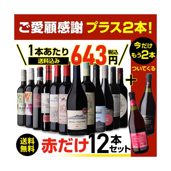 ワインセット 赤セット 赤だけ 特選 12本+2本(計14本) 242弾 送料無料 イタリア フランス 浜運A