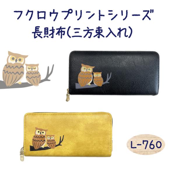財布 長財布 三方束入れ 札入れ ラウンドファスナー ギフト プレゼント ふくろう フクロウ 不苦労 レトロ 開運 幸運 金運 贈り物 福財布 春財布 L-760