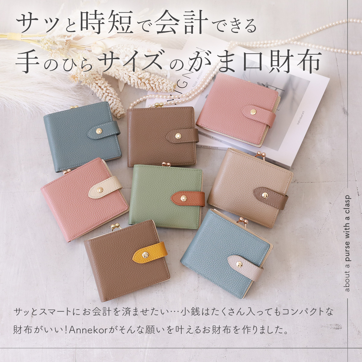 二つ折り財布 レディース 本革 がま口 ミニ財布 レディース がま口 二つ折り ブランド 使いやすい 小 革 レザー アンコール Annekor