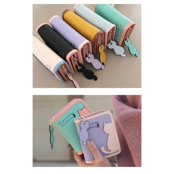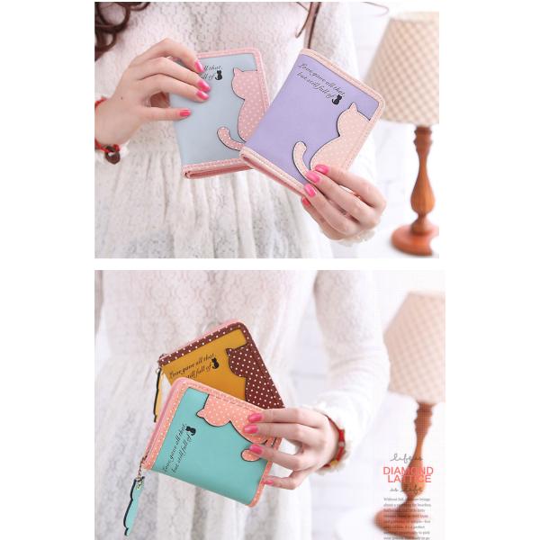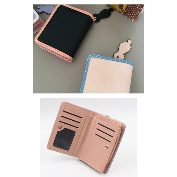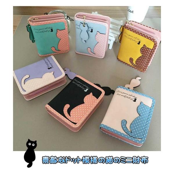 レディース財布 二つ折り財布 素敵なドット模様の猫のミニ財布 全6色 財布 女性用 さいふ サイフ ウォレット ショート財布 猫柄 ねこ 水玉 ドット ミニ財布