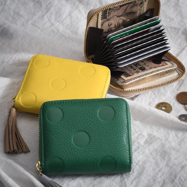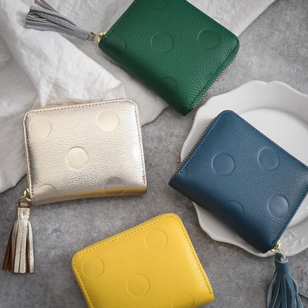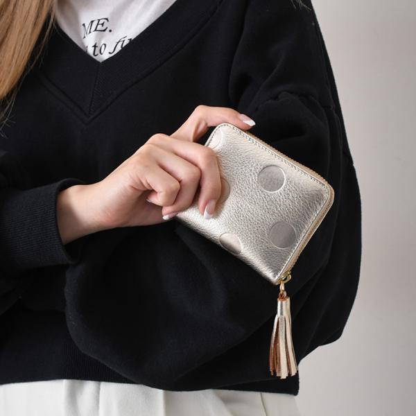 カードウォレット 財布 ドット柄 ペルケ perche ジャバラ メタリック 本革 お札を折らない おしゃれ 小銭入れ 札 二つ折り 水玉