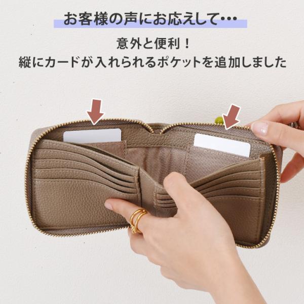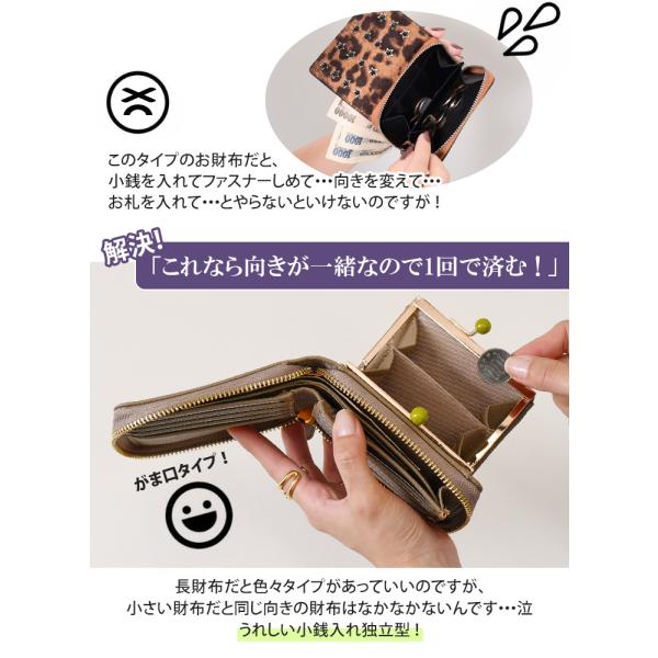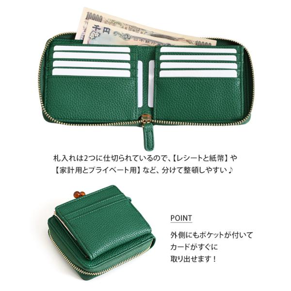 財布 レディース 二つ折り がま口 小さめ 使いやすい ラウンドファスナー 小銭入れ 札入れ カード入れ 向き 同じ 仕切り 玉付き 時短 上品