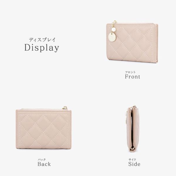 財布 レディース オシャレ 薄い 二つ折り 小さい キルティング レザー かわいい カード入れ 薄い財布 お洒落 大人 コンパクト 小銭入れ チャーム付き 女の子