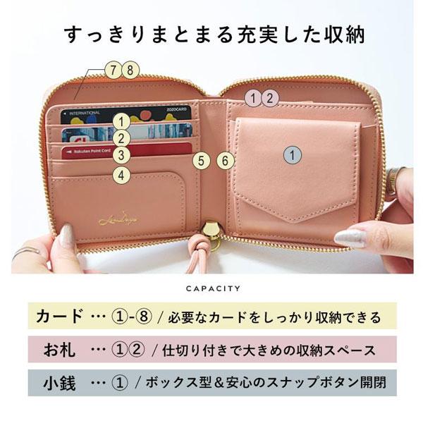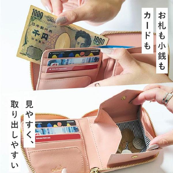 本革 二つ折り財布 ミニ財布 コンパクト フリンジ L字ファスナー 財布 LIZDAYS リズデイズ ラウンドファスナー レディース 財布 シンプル 大人 lz-615