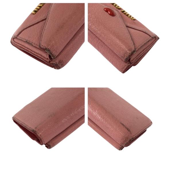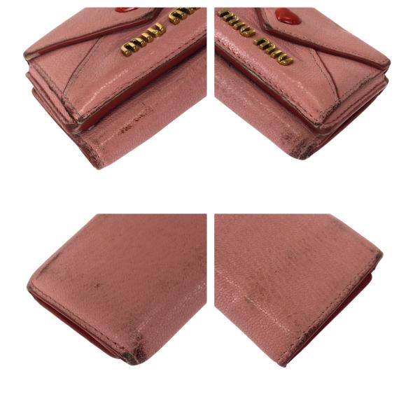 MIUMIU ミュウミュウ マドラス ラブ ピンク レッド ゴールド金具 レザー 折財布 コンパクトウォレット レディース 601085