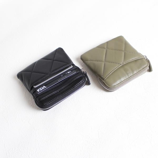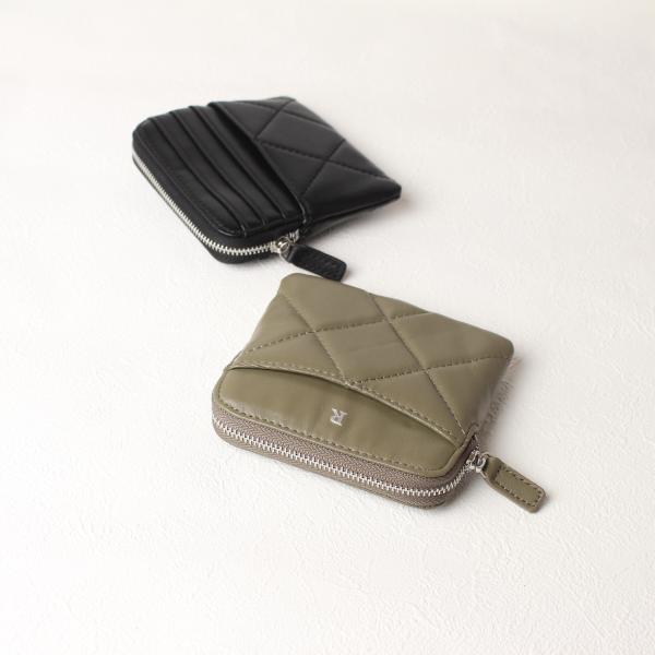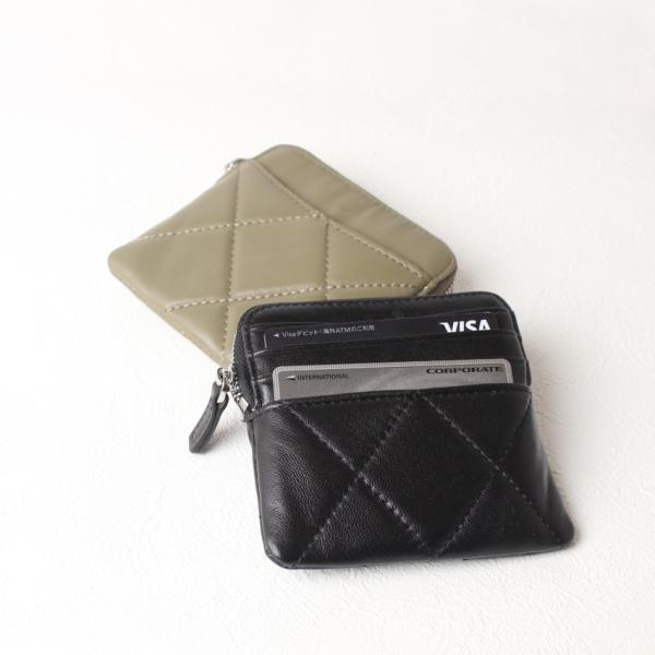 本革 カードケース付き ポーチ 刻印 名入れ キルティングレザー ミニ財布 化粧ポーチ ミニウォレット 財布 巾着バック付