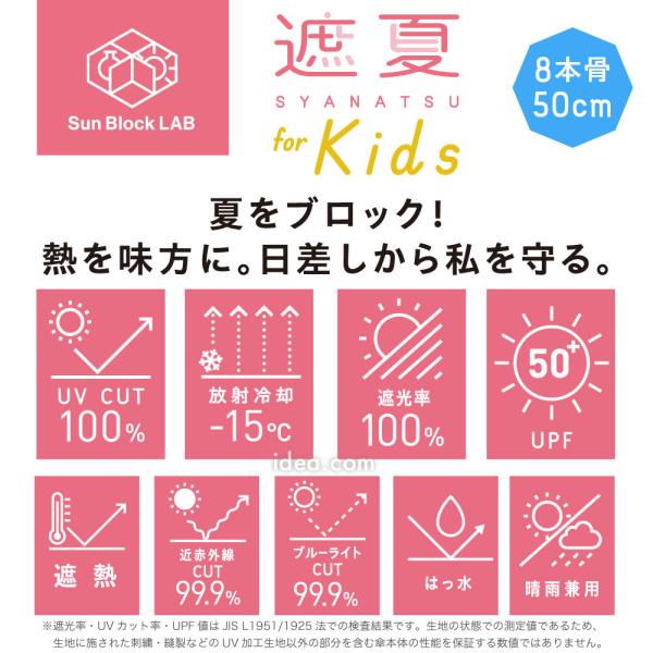 日傘 キッズ 子供 50センチ 晴雨兼用傘 小学生 傘 長傘 サンブロックラボ 遮夏クール晴雨兼用傘ロング for kids [コジット]