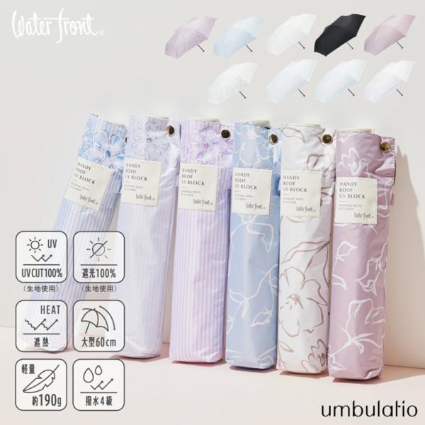 Waterfront 公式 折りたたみ傘 日傘 晴雨兼用 ハンディールーフUVブロック 60cm UVカット100% 完全遮光 遮熱 大きい 軽量 軽い コンパクト 細い 雨傘