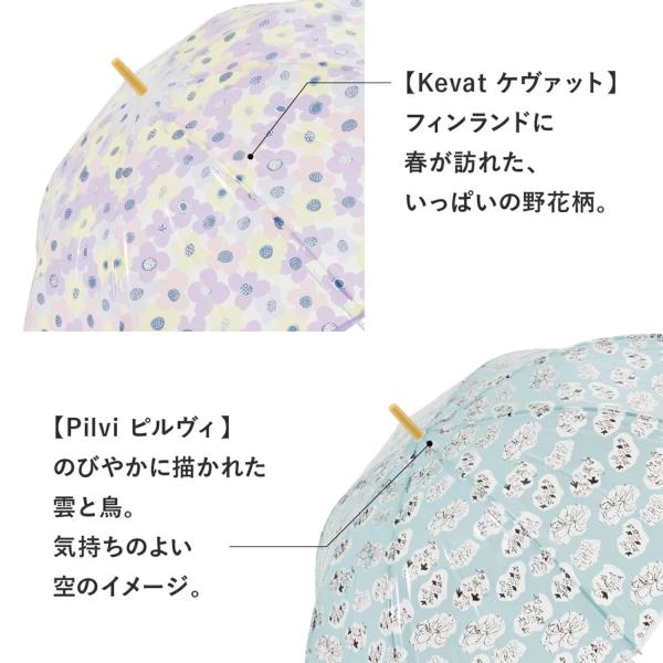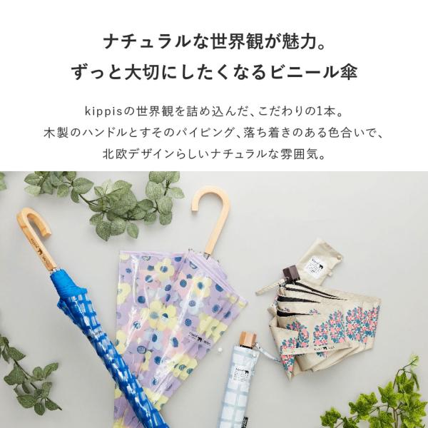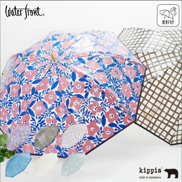 Waterfront 公式 kippis パイピングビニール 60cm ビニール傘 長傘 北欧 デザイン レディース 花柄 チェック 木手元 雨
