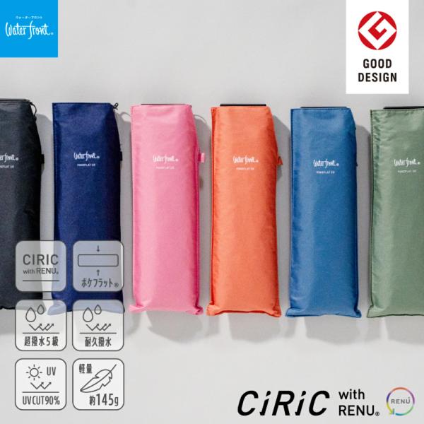 Waterfront 公式 折りたたみ傘 雨傘 55cm 極薄2.5cm 超軽量145g ポケフラット2.0 薄い 軽量 軽い コンパクト 撥水5級 UVカット 6本骨 サステナブル シンプル