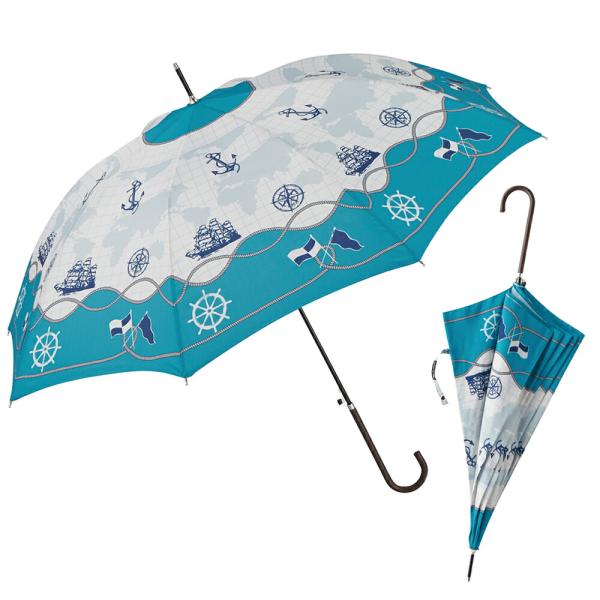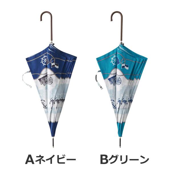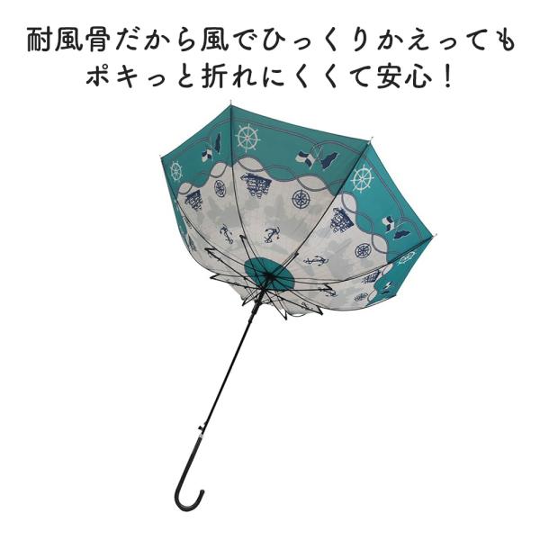 耐風傘 傘 長傘 耐風仕様 FRP骨 マリンスカーフ スリムジャンプ傘 親骨60cm ネイビー グリーン レディース 女性 宮嶋 傘専門店