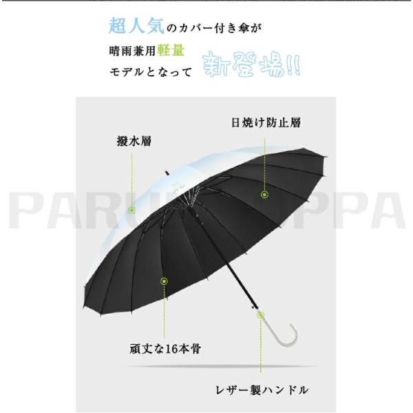 傘 カバー付き スライドカバー 長傘 長柄傘 雨晴兼用 メンズ レーディス 男女兼用 かさ 大人用 傘 濡れない傘 傘ケース 無地 丈夫 大きめ シンプル 16本骨 梅雨