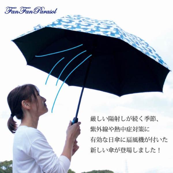 扇風機付き日傘 ファンファンパラソル 晴雨兼用 傘 レディース 大人可愛いデザインに扇風機が付いた傘 雨傘 日傘兼用 運動会やスポーツ観戦などでも涼しい