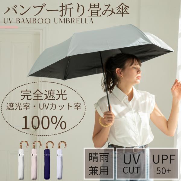完全遮光100% レディース バンブー 折り畳み 日傘 UPF50+ 晴雨兼用 親骨55cm 8本骨 手開き式 折畳傘 折畳 UVカット 遮熱 傘 紫外線対策 撥水 耐風 軽量 女性用