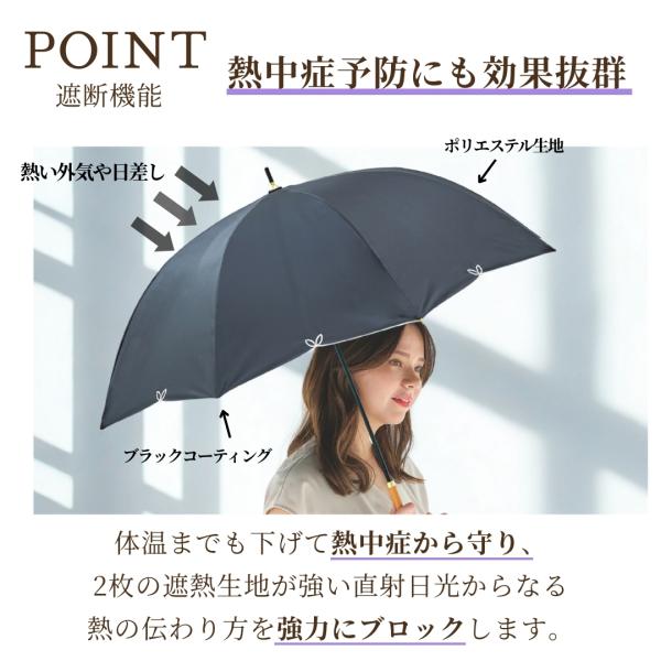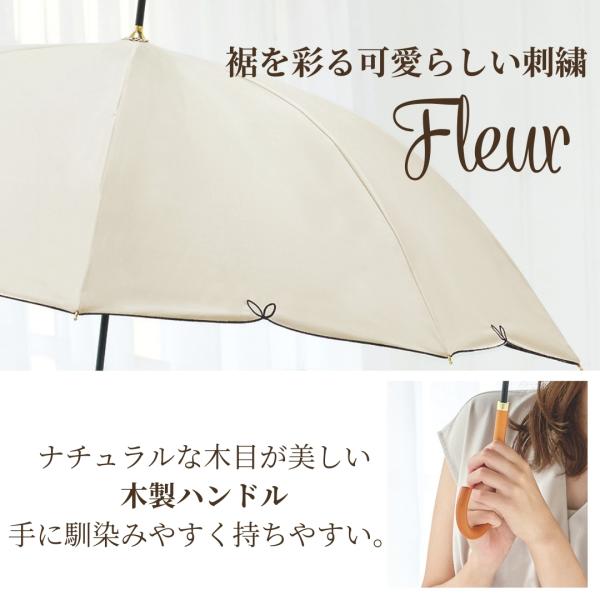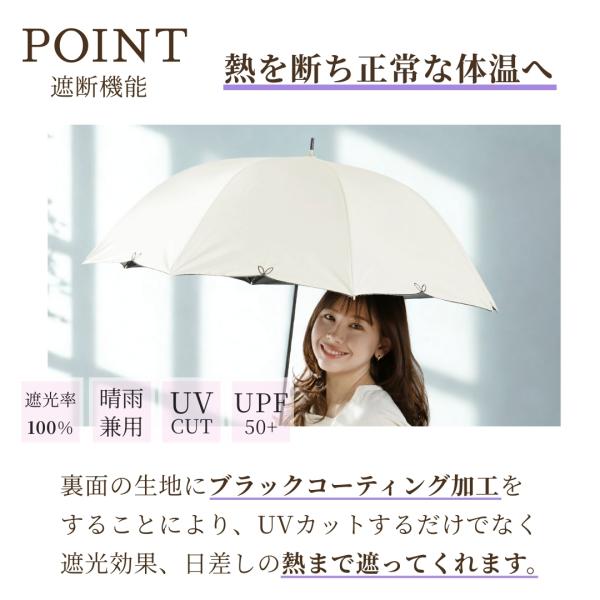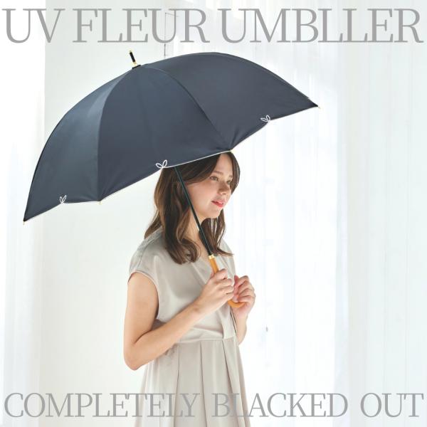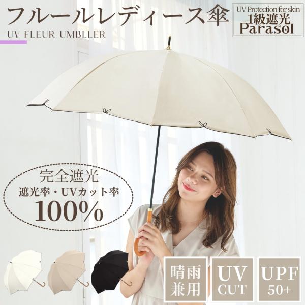 完全遮光100% レディース フルール 日傘 UPF50+ 晴雨兼用 親骨58cm 8本骨 手開き式 長傘 雨傘 晴雨 UVカット 遮熱 紫外線対策 撥水 耐風 軽量 女性用
