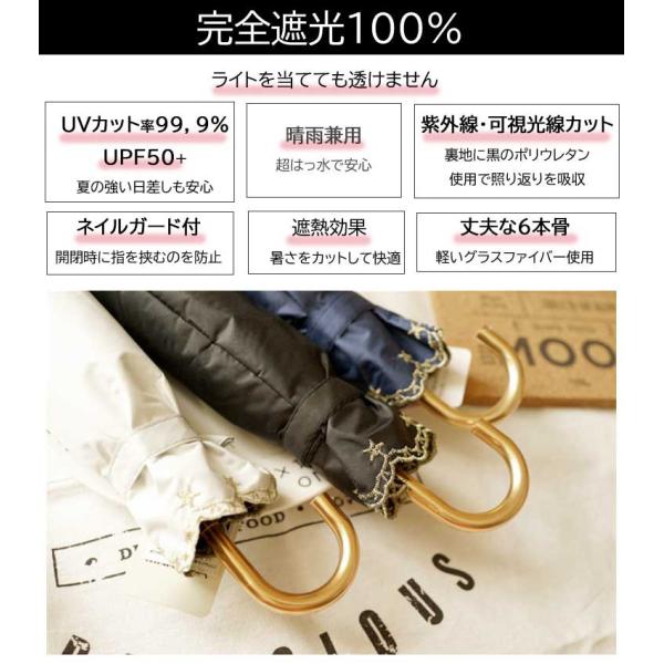 日傘 折りたたみ 完全遮光 遮熱 軽量 uv 晴雨兼用 紫外線カット 折り畳み傘 星柄 スカラップ フリル おしゃれ レディース ギフト ブラック オフホワイト