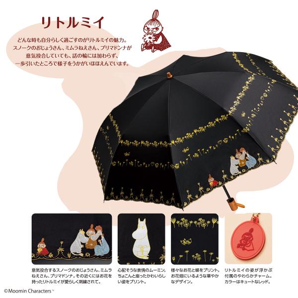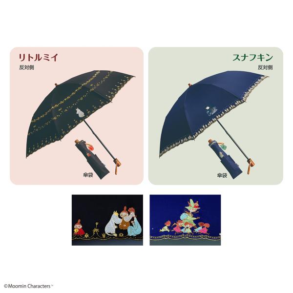 ムーミン日傘 晴雨兼用折りたたみ傘 リトルミイ スナフキン UVカット 黒 ネイビー 遮熱 UVカット99%以上 遮光率99%以上