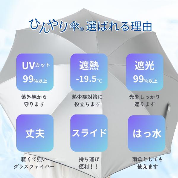 日傘 コンパクト長傘 遮熱 UVカット シルバー 晴雨兼用 50cm×8本骨 レディース 軽量 ひんやり傘 LIEBEN-1477