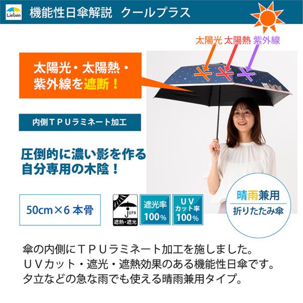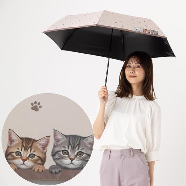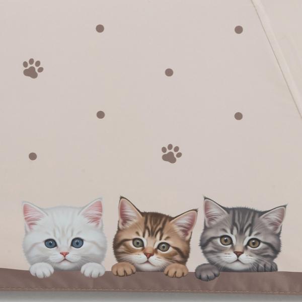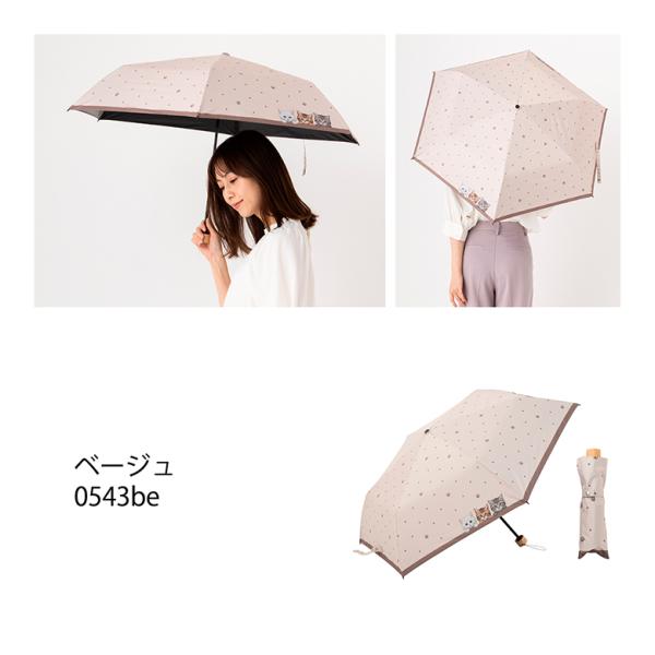 日傘 折りたたみ レディース 晴雨兼用 軽量 3つ折り 50cm 6本骨 紫外線対策 LIEBEN-0543 ネコ ベージュ