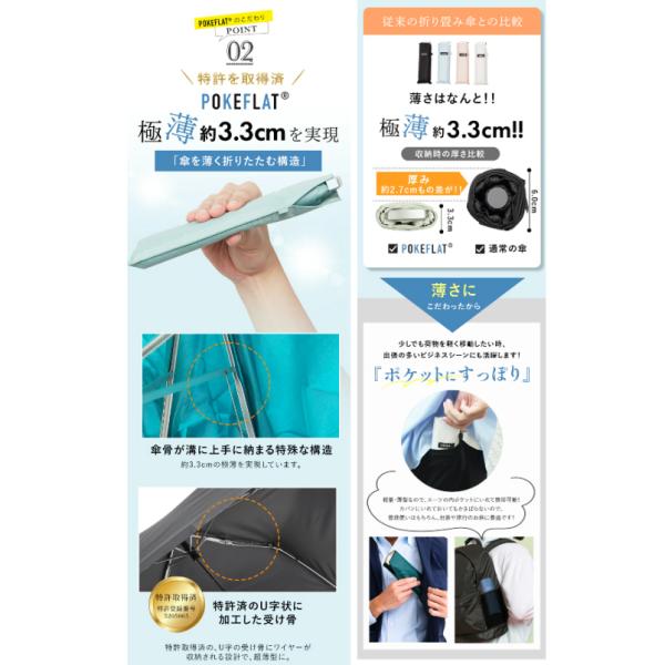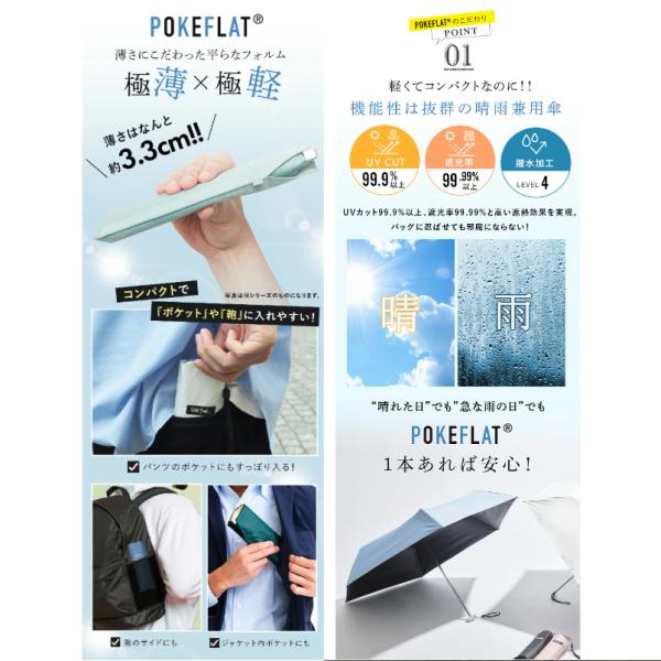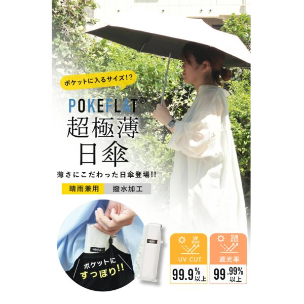 Waterfront 公式 超極薄3.3cm 折りたたみ 日傘 晴雨兼用傘 ポケフラット サンシェイド 50cm 折りたたみ 軽量 軽い 薄い UVカット99.9% 遮光率99.99% 撥水4級