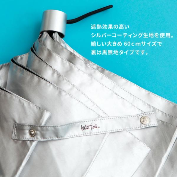 Waterfront 公式 銀行員の日傘 60cm 太陽光を反射 雨傘 メンズ レディース 猛暑に強い シルバーコーティング 日傘 折りたたみ 完全遮光生地 クールテック 涼感