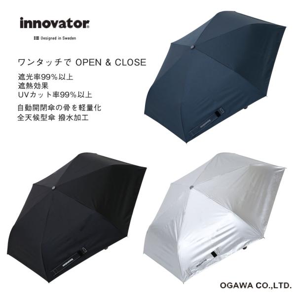 innovator 自動開閉 晴雨兼用 折りたたみ傘 ワンタッチ 日傘 選べる3色 軽量 晴雨兼用 遮熱 遮光 UVカット率99%以上 UPF50+ 高級 男女兼用 UV ミニ おしゃれ