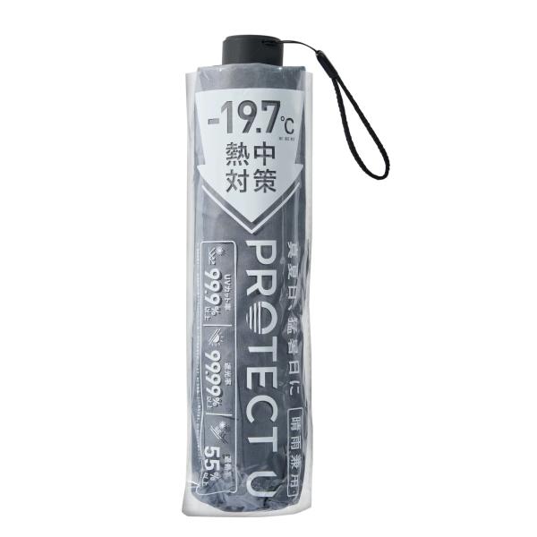 PROTECT U プロテクトユー 折りたたみ 日傘 グレー 1本 完全遮光 UVカット率99.9% 紫外線対策・日焼け対策 軽量 晴雨兼用 持ち運び