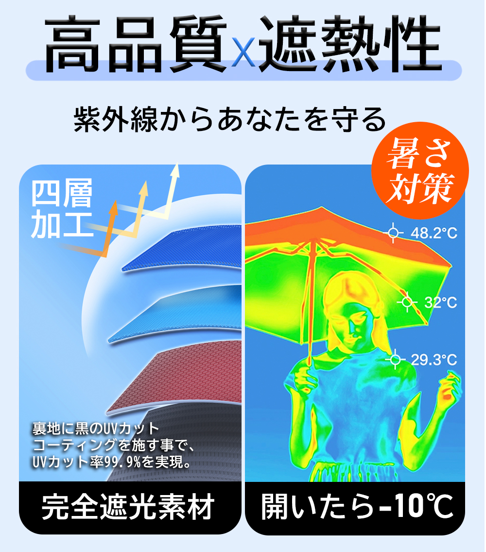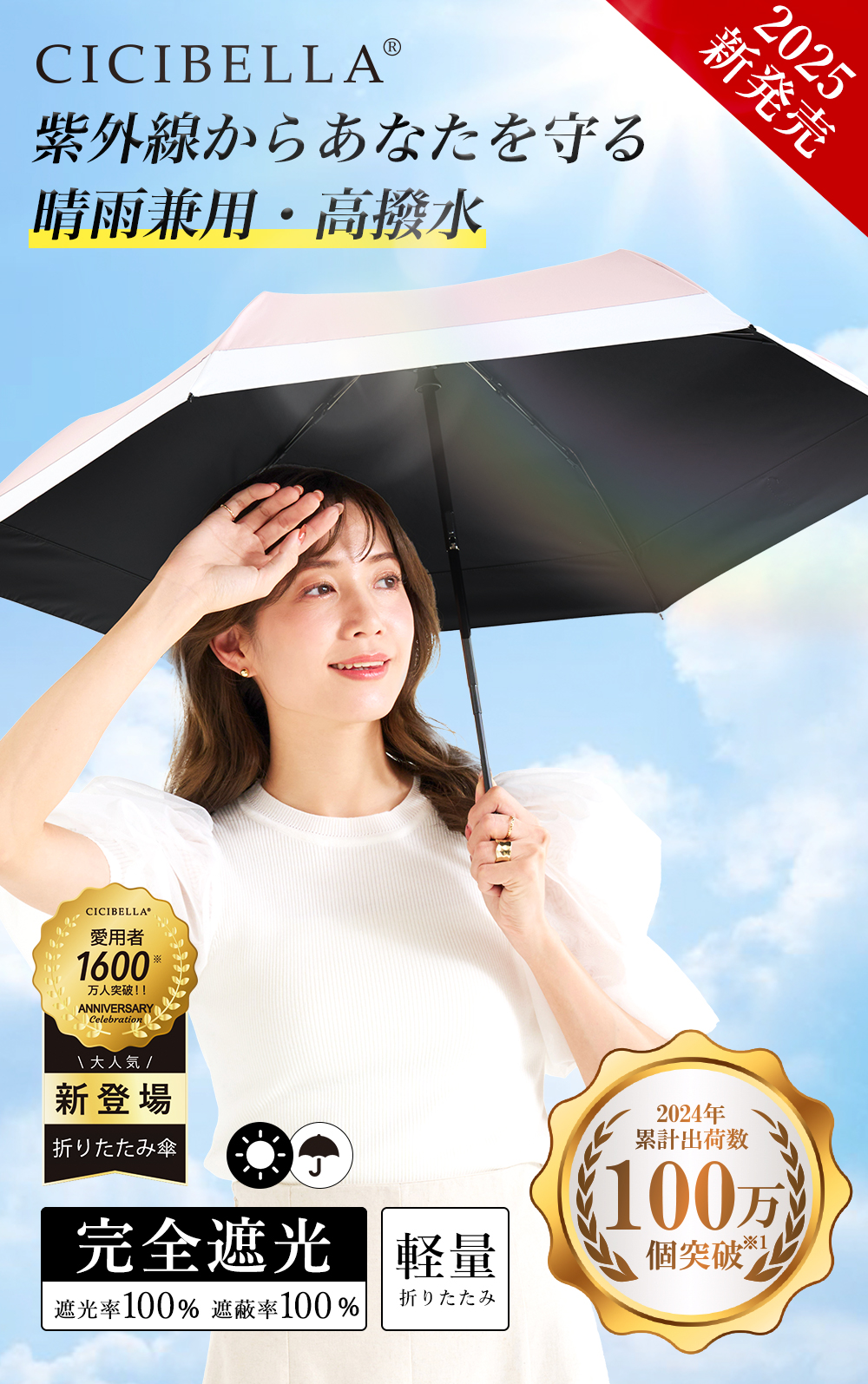 日傘 コンパクト 6本骨 傘 完全遮光 100% UVcut 超軽量 強風対応 晴雨兼用 持ち運び便利 通勤 通学 散歩 高級感 CICIBELLA 爆買