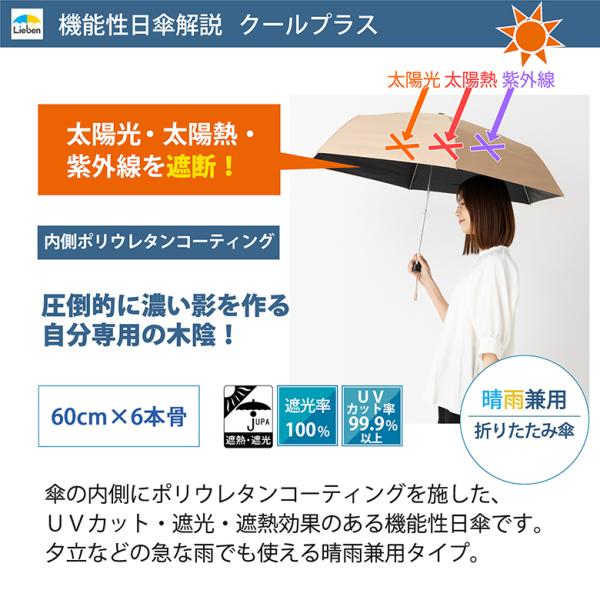 日傘 折りたたみ UV遮熱遮光大きいミニ傘(晴雨兼用) 60cm×6本骨 UVカット レディース 女性用 男女兼用 ひんやり傘 クールプラス リーベン 0549