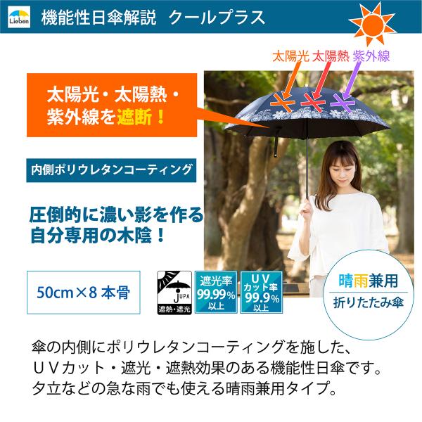 日傘 折りたたみ UV遮熱遮光折傘 晴雨兼用 50cm×8本骨 UVカット レディース 女性用 ひんやり傘 クールプラス リーベン 0701