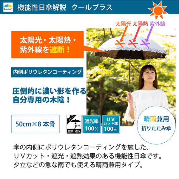 日傘 折りたたみ UV遮熱遮光折傘 花柄刺繍 晴雨兼用 50cm×8本骨 UVカット レディース 女性用 ひんやり傘 クールプラス リーベン 0704