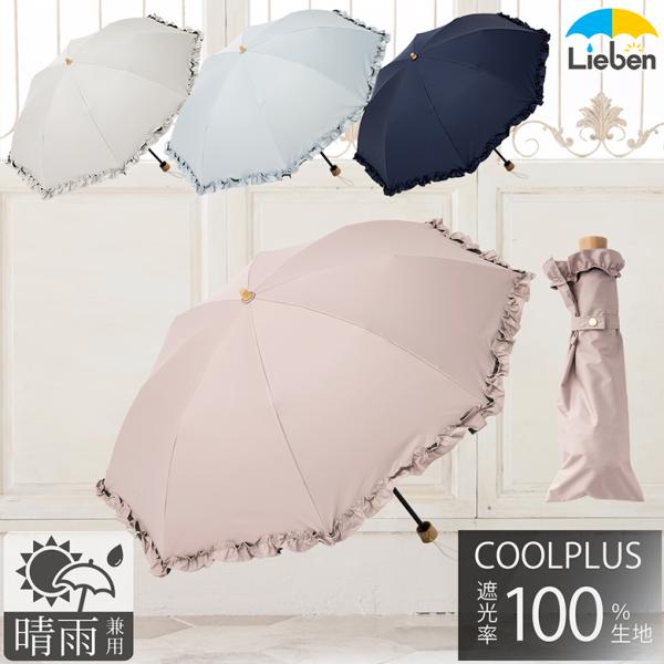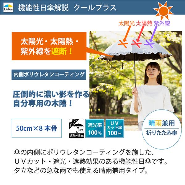 日傘 折りたたみ UV遮熱遮光折傘 フリル 晴雨兼用 50cm×8本骨 UVカット レディース 女性用 ひんやり傘 クールプラス リーベン 0715