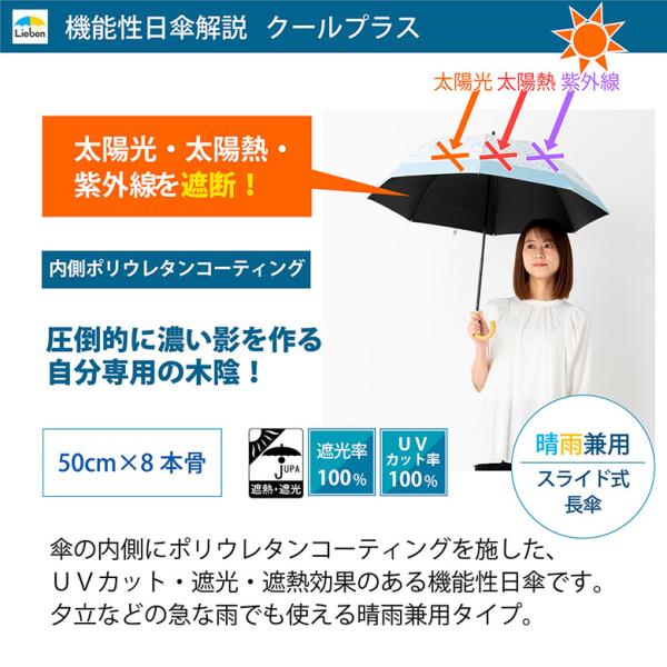 日傘 ショート傘 50cm×8本骨 UV遮熱遮光コンパクト長傘 晴雨兼用 レディース 女性用 クールプラス ギフト LIEBEN-1701