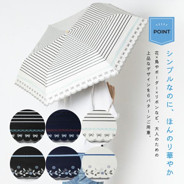 晴雨兼用 折りたたみ 日傘 レデ ィース UVカット 遮光 ボーダー 花 鳥 撥水 シンプル オシャレ かわいい 女性用 プレゼント ギ フト パラソル 黒 紺 白