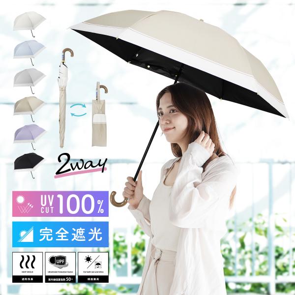 日傘 完全遮光 折りたたみ 軽量 遮光率100% UVカット率100% UPF50+ バイカラー 2WAY レディース 晴雨兼用 熱中症 防止 対策