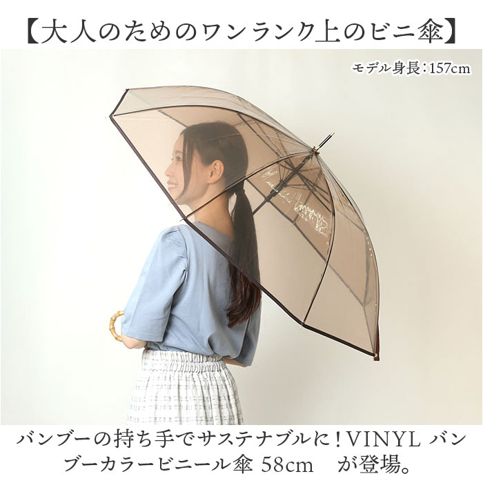 ヴァイナル VINYL ヴァイナル ビニール傘 58cm バンブー カラー 通販 ジャンプ傘 雨傘 長傘 傘 かさ カサ 婦人傘 バンブーハンドル バンブー手元 無地 軽量 耐風