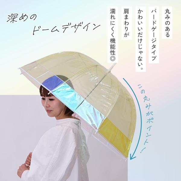 60cm 雨傘 クリアバイカラーアンブレラ ドーム シャイニーアンブレラ レディース クリアアンブレラ ビニール傘 手開き式 長傘 長雨傘