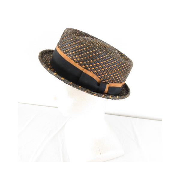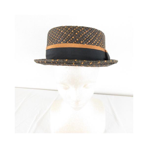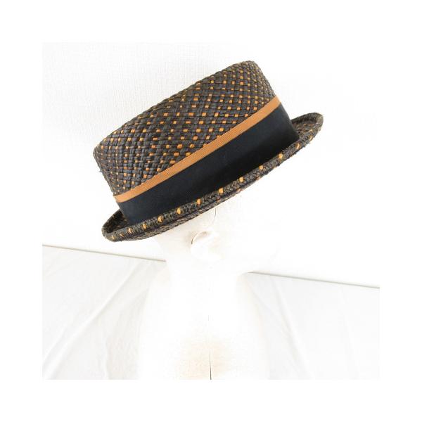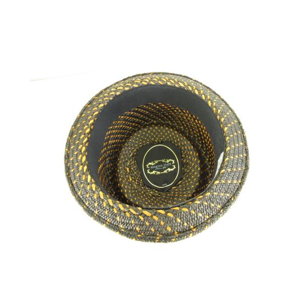 MAKINS HATS カンカン帽 パナマハット USA 製 茶 黒 L *A898 レディース