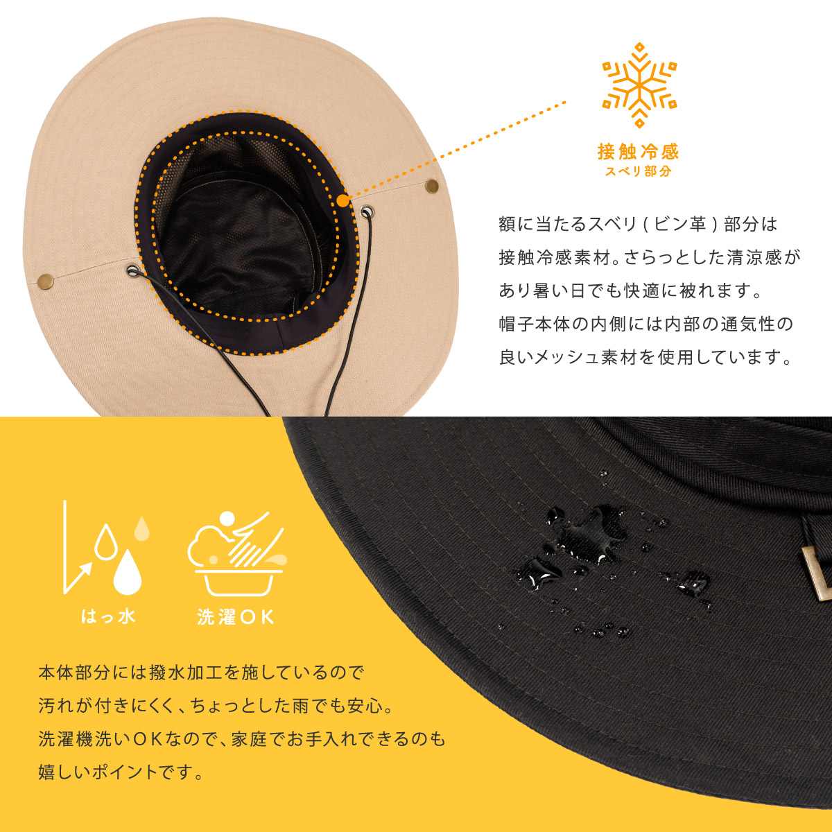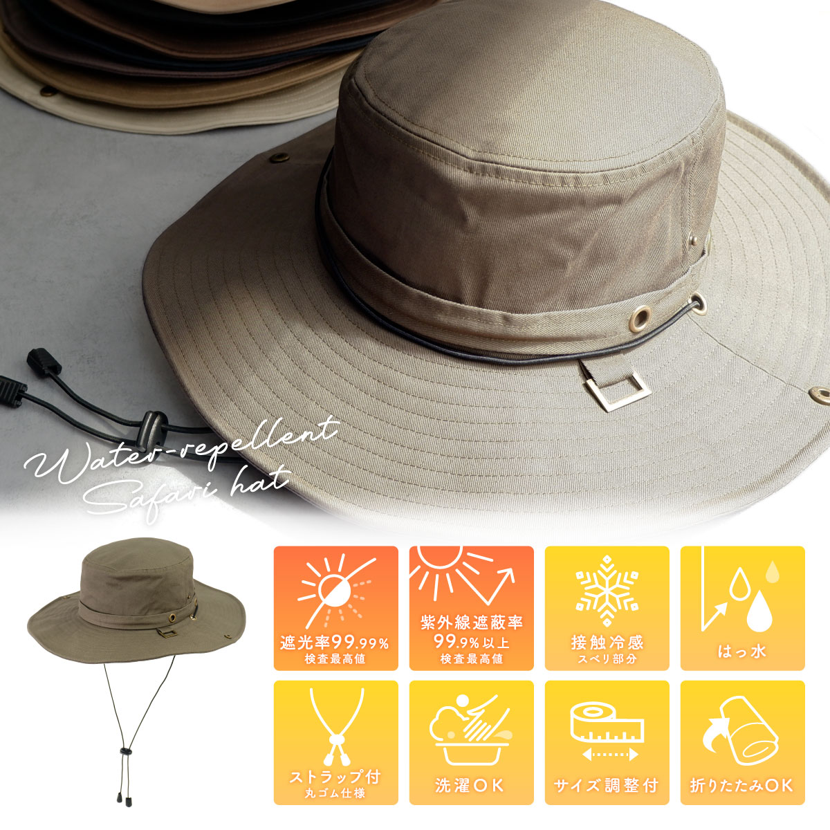 帽子 40代 50代 60代 70代 コットンツイルサファリハット レディース メンズ 大きいサイズ 撥水 接触冷感 遮光 遮熱 UVカット サイズ調整 洗濯可