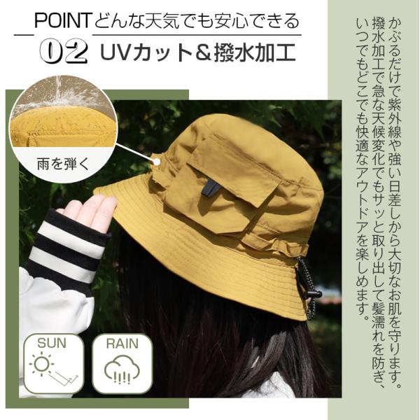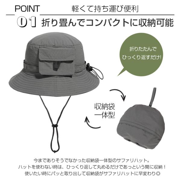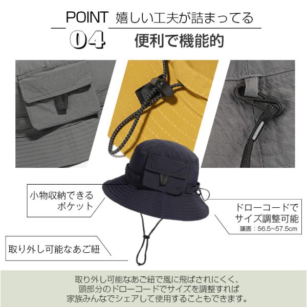折りたたみ サファリハット レディース バケットハット メンズ キッズ日焼け防止撥水UVカットあご紐付き サイズ調整ひも ぼうし
