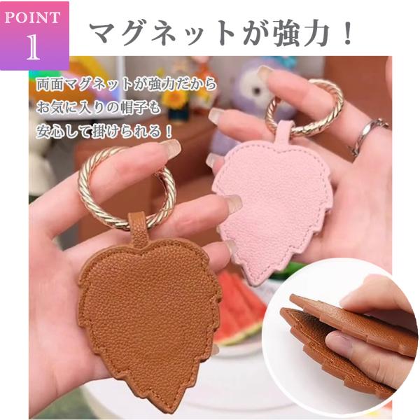 ハットクリップ 帽子クリップ ハート キャップクリップ 帽子収納ホルダー キーホルダー 強力マグネット紛失防止 磁石 レザー 葉型 ハート型 持歩き